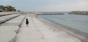 小さなお子さまの海デビューにもぴったりです。波もおだやかで、消波ブロックの内側なので安心感◎。ごみも無いし!